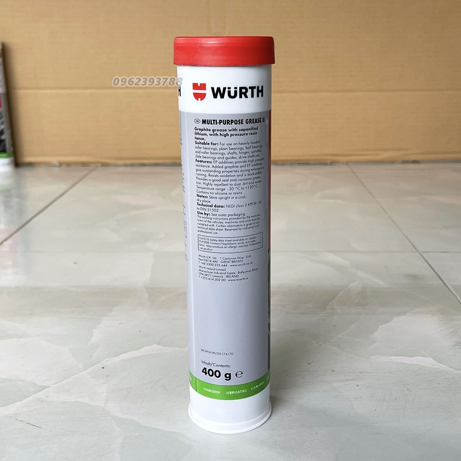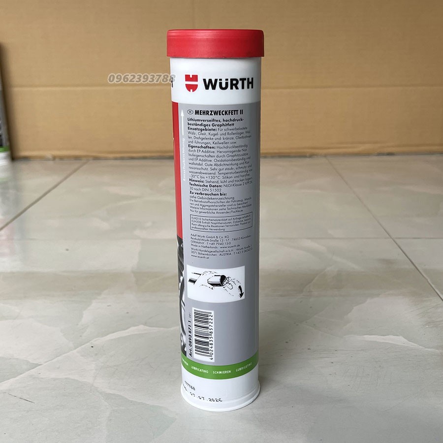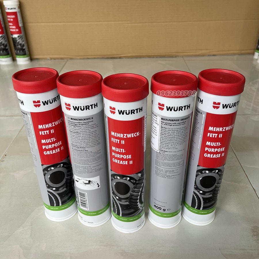Ô tô > Dầu nhớt và phụ gia ô tô > Mỡ & Chất bôi trơn || Mỡ Bò Wurth Lithium Multi-Purpose II. Bôi trơn bạc đạn vòng bi trục bánh răng cao cấpCòn hàng