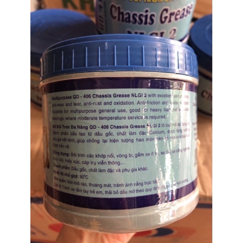 Mỡ Bôi Trơn Đa Năng Chassis Grease NLGI 2là loại mỡ đa dụng có thành phần cấu tạo từ dầu gốc, chất làm đặc Calcium, được tăng cường phụ gia kết dính và các phụ gia chống rỉ, chống oxy hóa giúp chống lại hiện tượng hao mòn trên bề mặt kim loại cần được bảo vệ. Giảm thiểu tối đa chi phí bảo trì, thời gian sử dụng của mỡ được kéo dài, tạo nên tính ổn định cao cho máy móc, thiết bị.