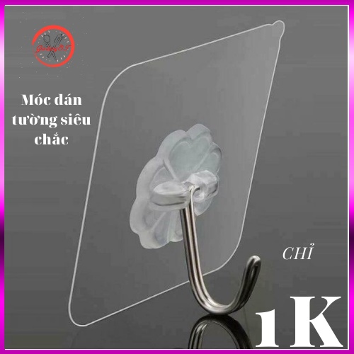 - Móc dán tường trong suốt tiện dụng bền, chịu nước, không bong tróc.