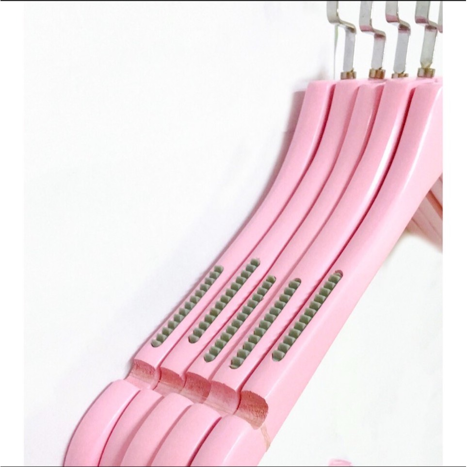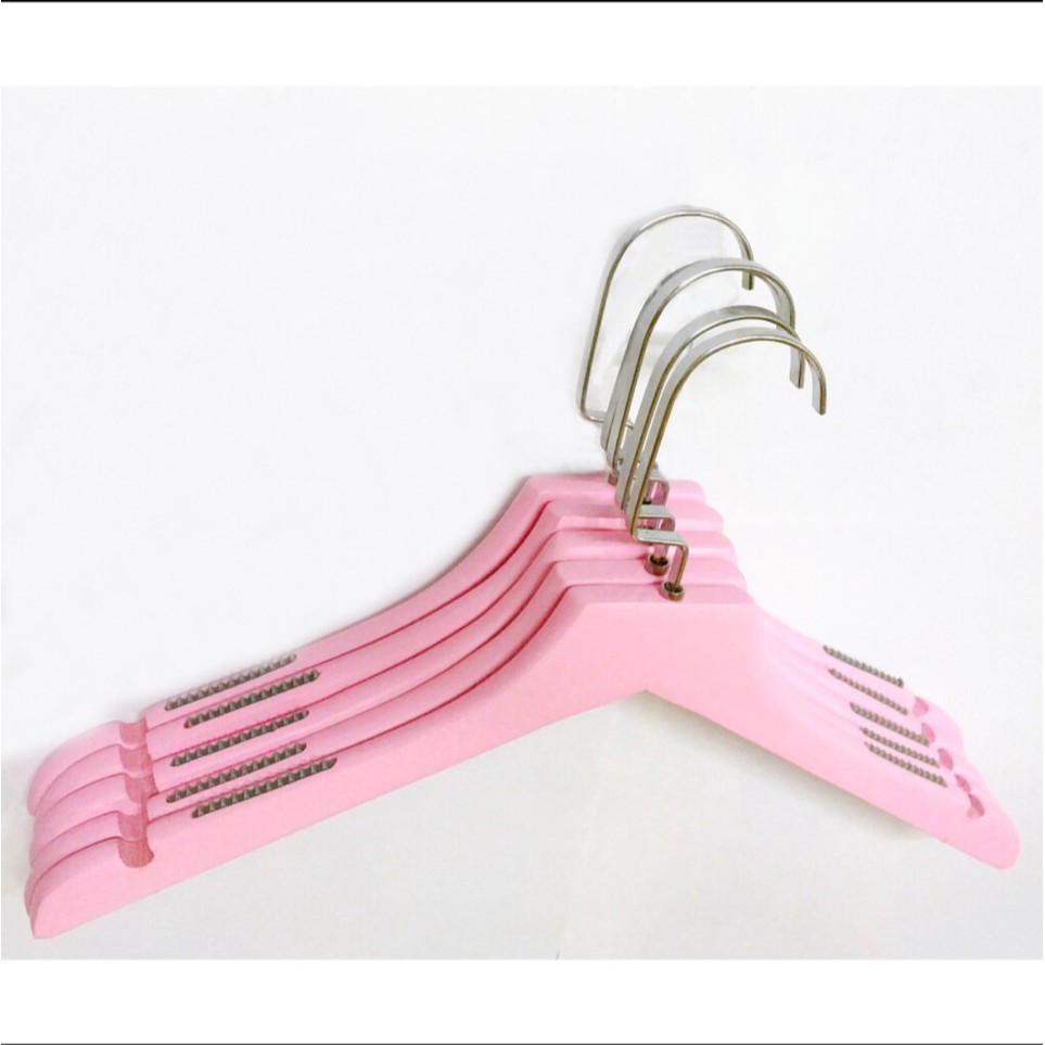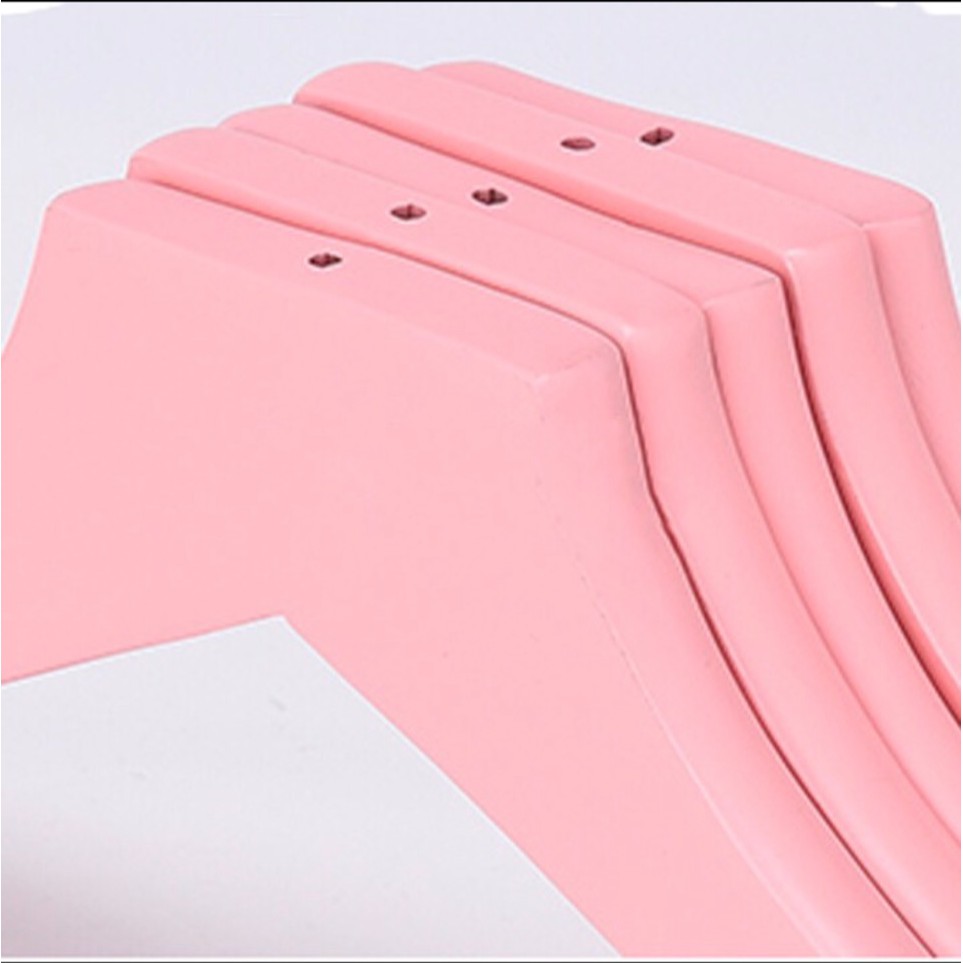 Móc Gỗ Treo Quần Áo Hồng 44.5cm (10 móc)Móc gỗ hồng treo quần áo có vai đệm chống trượt, thân móc được sơn phú màu hồng 2 lớp bóng mịn. Đầu móc sáng bóng xi mạ hạn chế gỉ sét khi sử dụng thời gian dài. Móc gỗ hồng thích hợp cho việc treo móc quần áo ở các shop thời trang phong cách trẻ trung, shop quần áo trẻ con,...