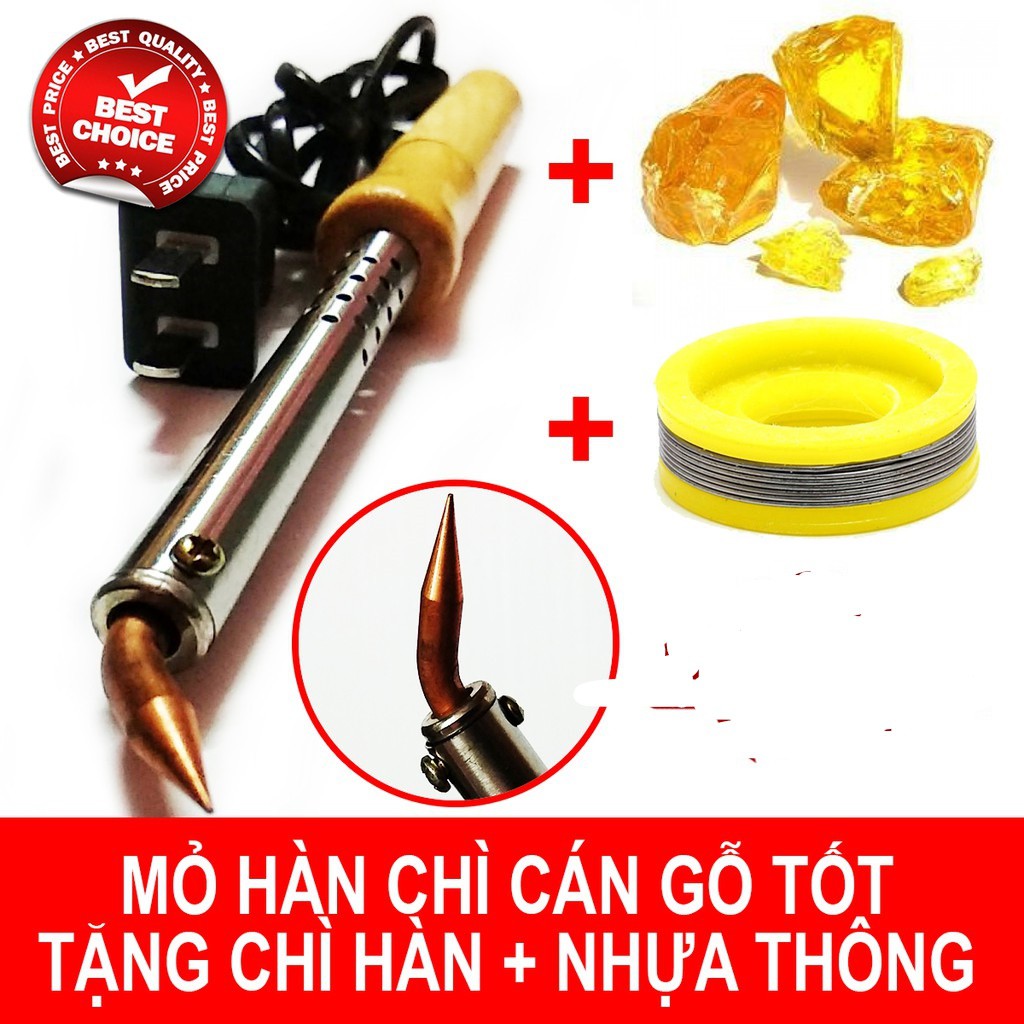 mỏ chì hàn cán gỗ 60W ( tặng chì hàn + nhựa thông)