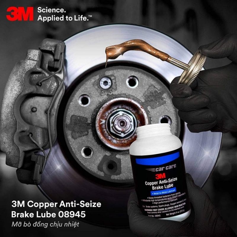 3M Copper Anti-Seize Brake Lube là chất bôi trơn kim loại để bôi trơn cho hệ thống phanh, bugi, cảm biến oxy và nhiều hơn nữa. Việc pha trộn các kim loại có kích thước hạt trong mỡ bán tổng hợp được thiết kế để chịu được áp lực cực trị và nhiệt độ không đều lên đến 2000 độ F, duy trì sự chuyển động tự do giữa các kim loại. Nó cũng rất hiệu quả đối với bu lông, và các bộ phận kim loại chà xát với nhau.