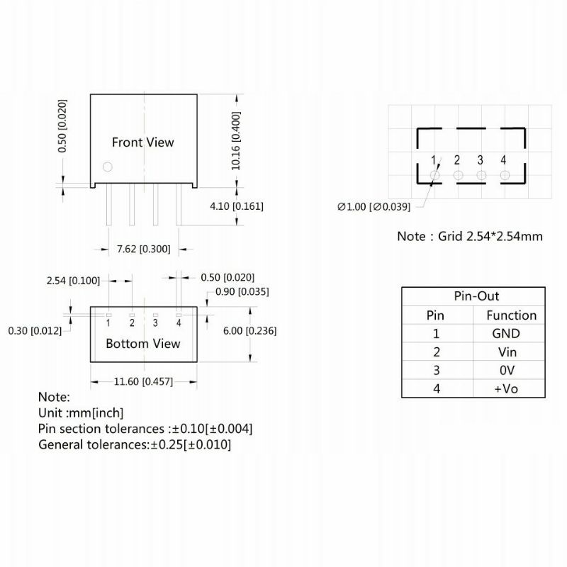 Module B1205S - 1W: Áp vào 12v, áp ra 5V: công suất 1WModule B1205S - 1W: Áp vào 12v, áp ra 5V: công suất 1W