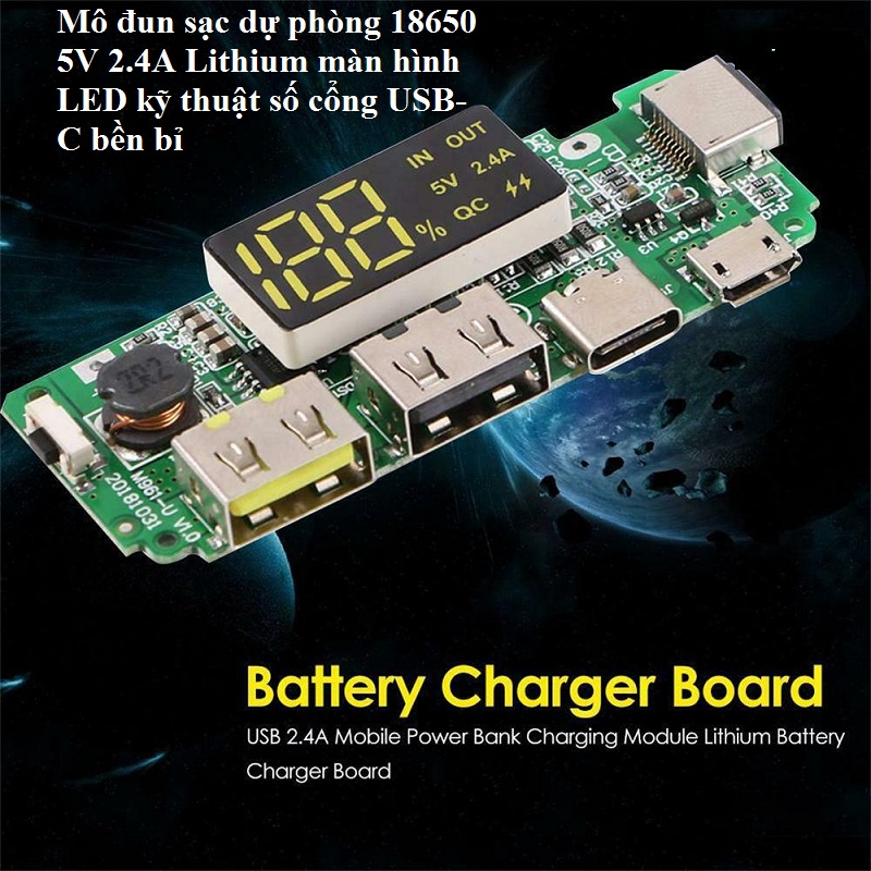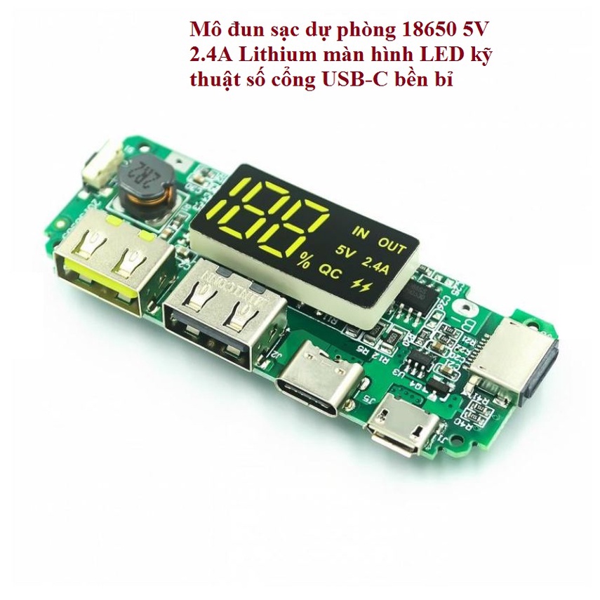 Mô-đun sạc pin lithium 18650 dự phòng có đèn LED 2 cổng USB 5V 2.4A 2A 1A Micro / Type-CĐặc điểm: