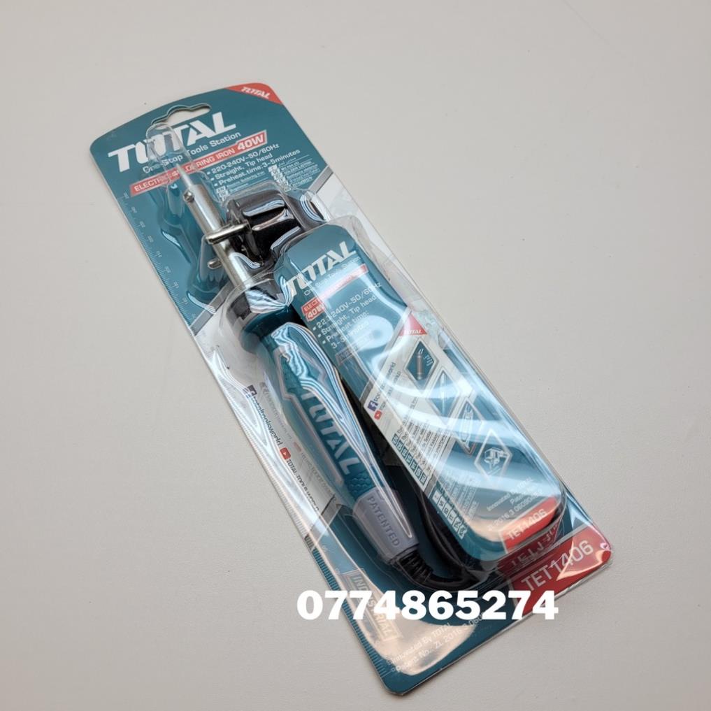 Nhà cửa & Đời sống > Dụng cụ & Thiết bị tiện ích > Dụng cụ > Dụng cụ hàn điện || Mỏ hàn chì cao cấp chính hãng TOTAL dùng điện 220V công suất 40W - 60W - 100W 220V~240V TET1406 - TET1606 - TET10006Còn hàng