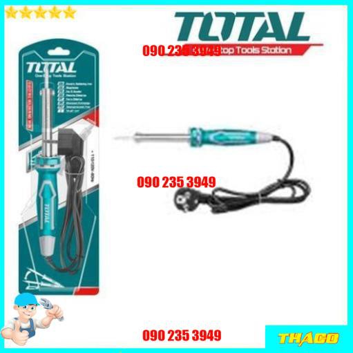 Mỏ hàn chì Total là công cụ sài điện áp 220-240V trong việc làm nóng đầu mũi và hàn chì dễ dàng, là công cụ cần thiết mà mỗi người thợ điện tử nào cũng nên có, được sử dụng nhiều trong việc hàn thiết bị, hàn bo....với kích thức nhỏ gọn dễ dàng sử dụng linh hoạt trong mọi tình huống, có thể sử dụng ở những nơi chật hẹ một cách hiêu quả và an toàn, được làm bằng chất liệu cao cấp có khả năng chịu nhiệt cực tốt, chịu lực, chịu được các va đập mạnh, chống rỉ sét theo thời gian, có tuổi thọ lâu dài khi sử dụng hợp lý và cần thận.Thông số kỹ thuật: