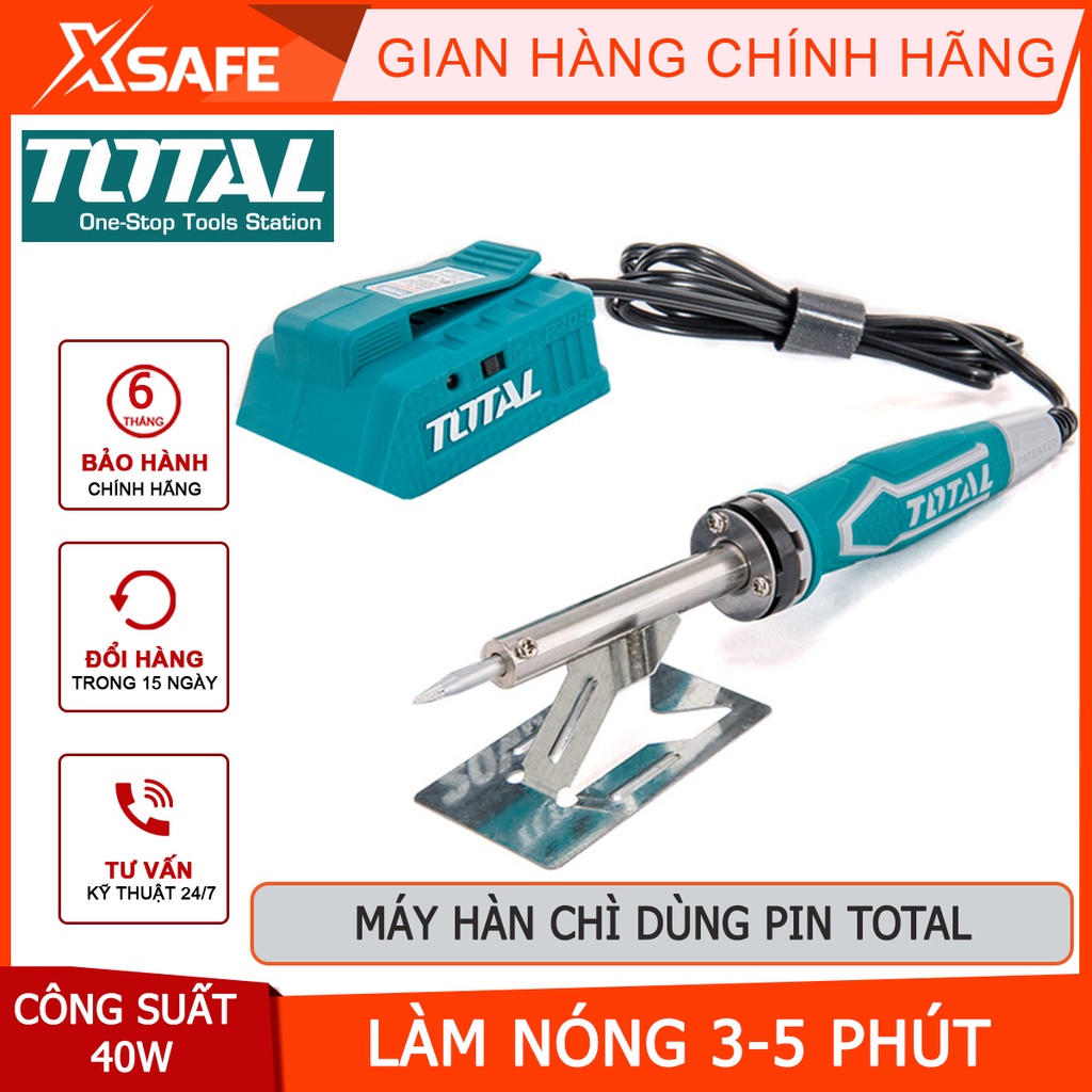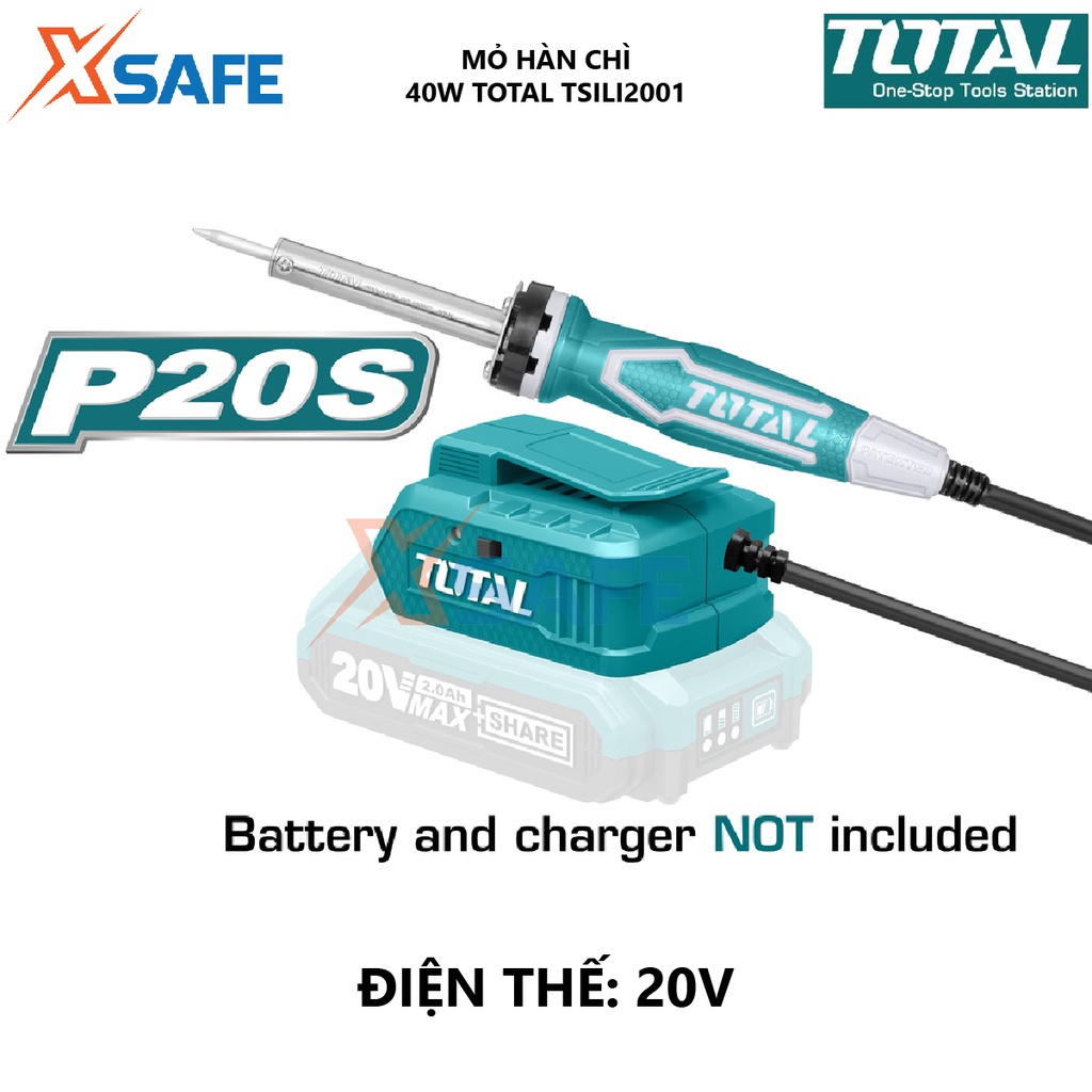 Mỏ hàn chì dùng pin TOTAL TSILI2001 Mỏ hàn thiết dùng pin Lithium 40W 20V - Không bao gồm pin và sạc - Chính hãng[XSAFE]