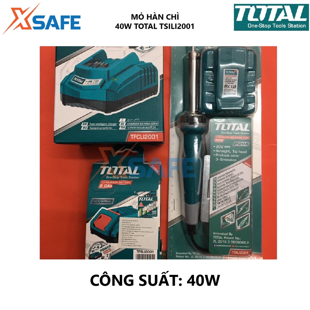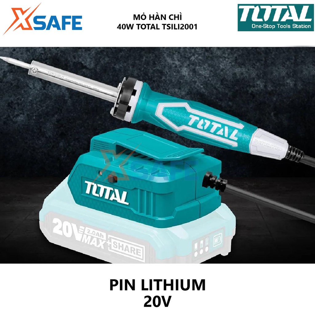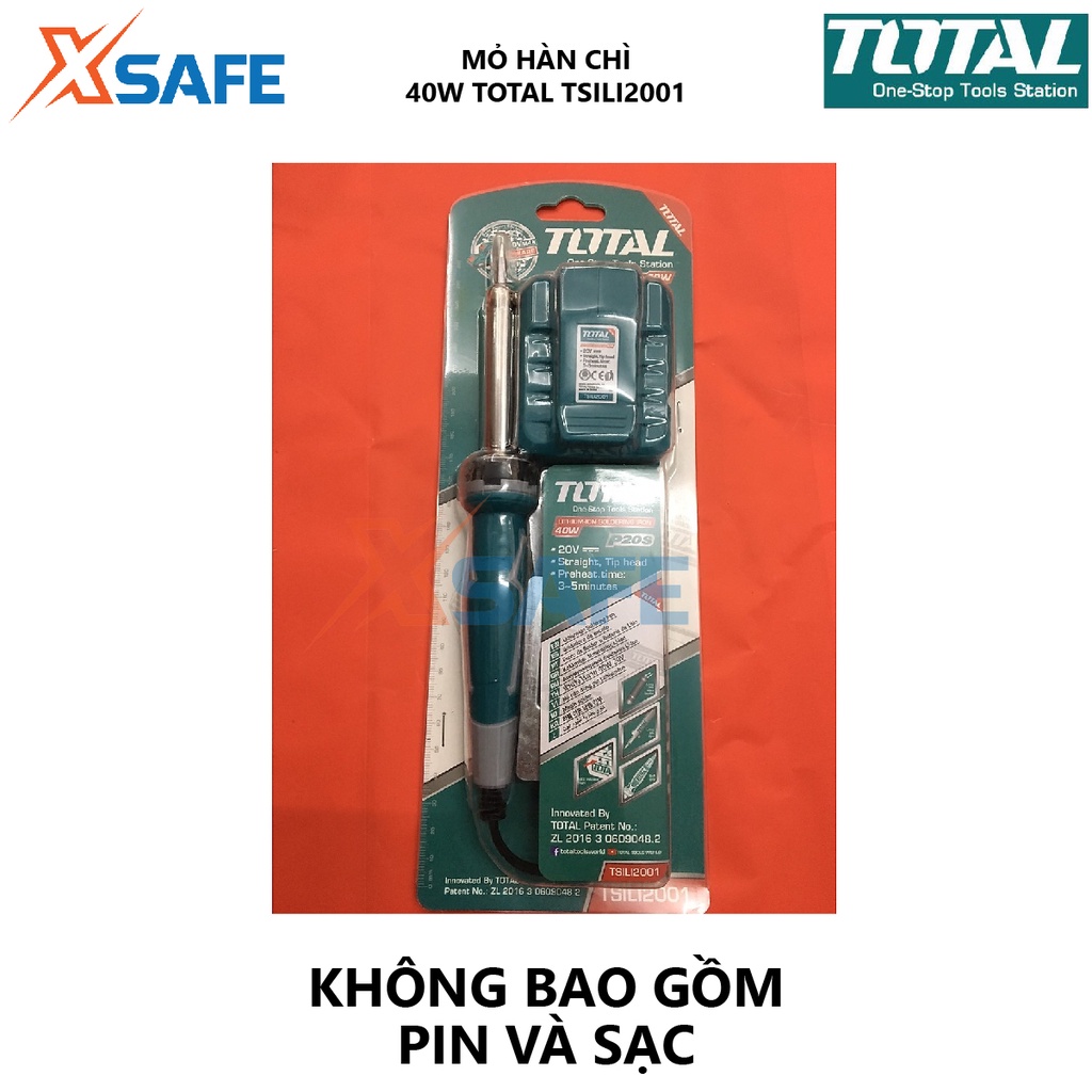 Nhà cửa & Đời sống > Dụng cụ & Thiết bị tiện ích > Dụng cụ > Dụng cụ hàn điện || Mỏ hàn chì dùng pin TOTAL TSILI2001 Mỏ hàn thiết dùng pin Lithium 40W 20V - Không bao gồm pin và sạc - Chính hãng[XSAFE]Còn hàng
