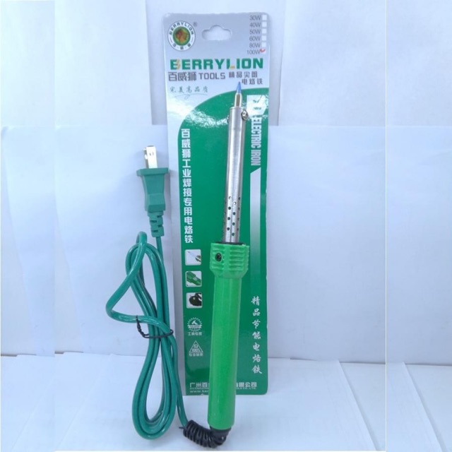- 60W Mỏ hàn nhọn cán nhựa xanh Berrylion được thiết kế với đầu nhọn thẳng, phích cắm 2 chấu, công suất 40W,60W,80W,100W. Cán bằng nhựa PBT, ruột bằng lõi mica tự nhiên, nóng nhanh. Dây dẫn tốt, ngăn ngừa gia tăng nhiệt đột ngột.