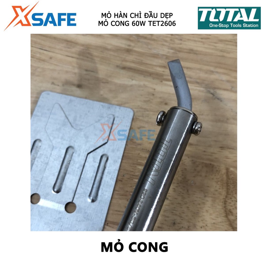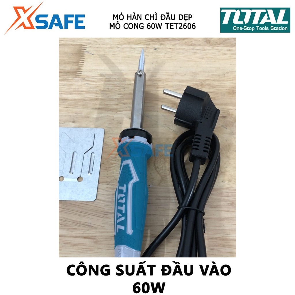 Giới thiệu Mỏ hàn chì TOTAL TET2606 Mỏ hàn mũi cong công suất đầu vào 60W, thời gian làm nóng 3-5ph, dùng nối bảng mạch, kim loại