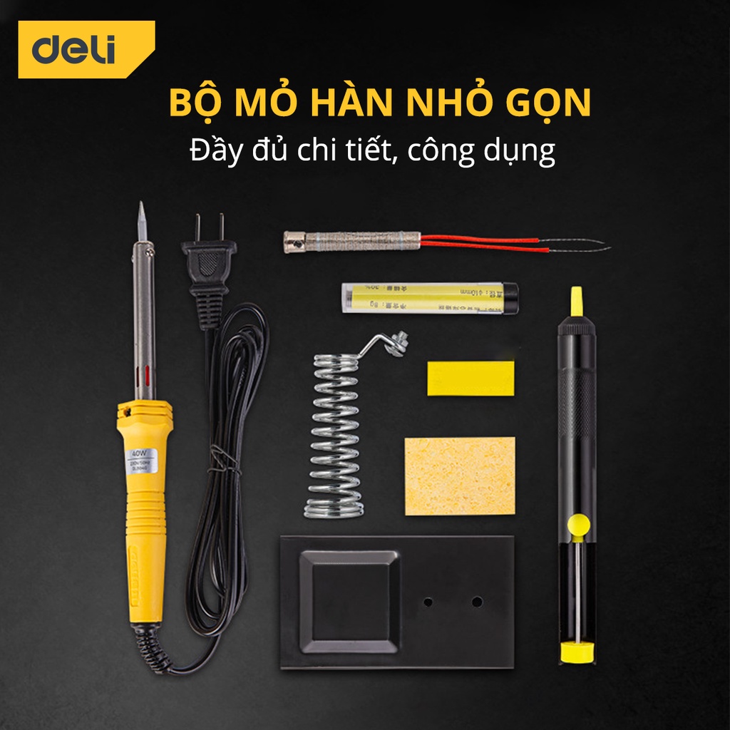 Bộ Mỏ Hàn Điện Deli 7 Chi Tiết Chính Hãng Chất Lượng Cao 40W Sử Dụng Đa Năng, Tiện Ích - DL393007