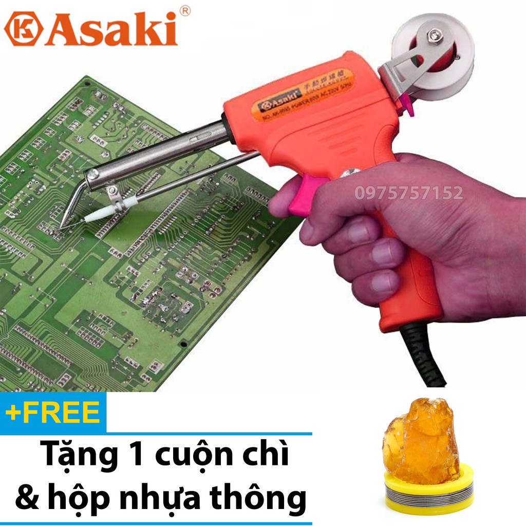 Mỏ hàn điện tử dạng súng, tự động đẩy thiếc Asaki AK-9095 60W - Nóng nhanh, mối hàn đẹp - Tặng thiếc & nhựa thông