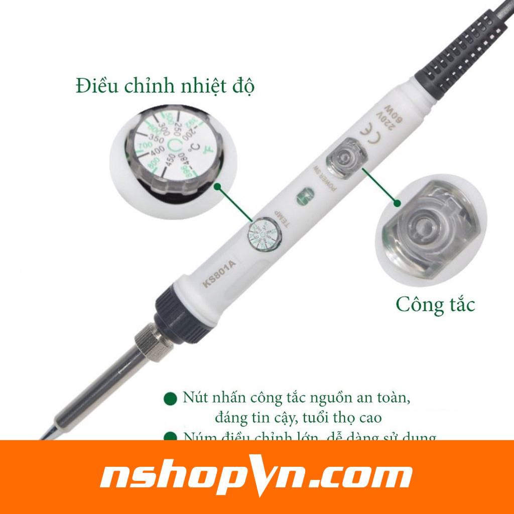 Mỏ hàn điều chỉnh nhiệt độ NO.901 KS801A 60W sử dụng chuẩn mũi hàn 936 900M