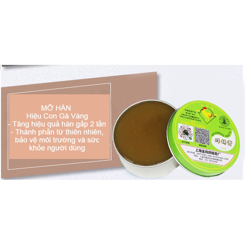 Mỡ Hàn là sản phẩm dùng để tăng độ kết dính giữa via mạch và mối hàn, giúp cho việc hàn linh kiện nhất là linh kiện dán dễ dàng hơn. Vì là dạng mỡ mềm nên có thể quệt lên chân linh kiện hoặc PCB trước khi hàn. Mỡ hàn làm dung môi giảm nhiệt độ nóng chảy của thiếc, đồng thời tạo thêm độ bóng đẹp và khả năng dính thiếc vào mối hàn.Tính năng sản phẩm: