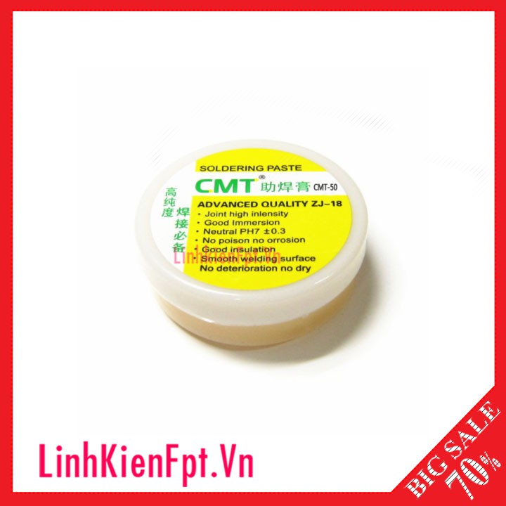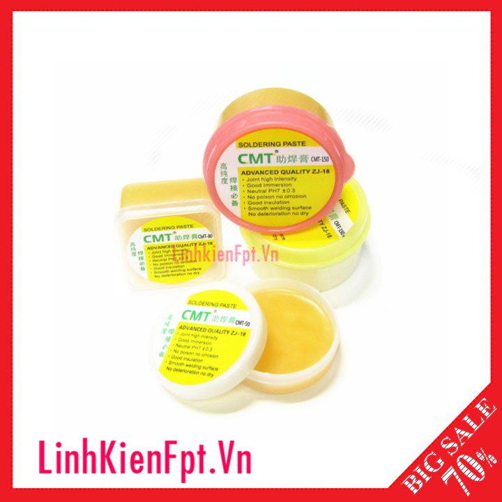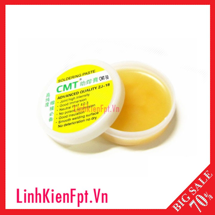 Mỡ hàn mạch điện tửMỡ hàn linh kiện dán là sản phẩm dùng để tăng độ kết dính giữa via mạch và mối hàn, giúp cho việc hàn linh kiện nhất là linh kiện dán dễ dàng hơn. Vì là dạng mỡ mềm nên có thể quệt lên chân linh kiện hoặc PCB trước khi hàn.