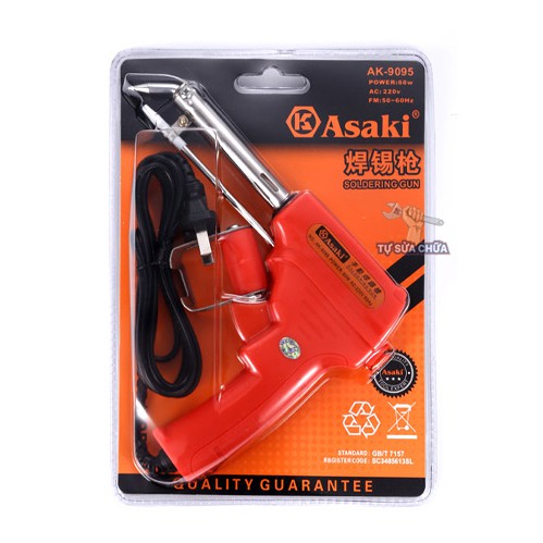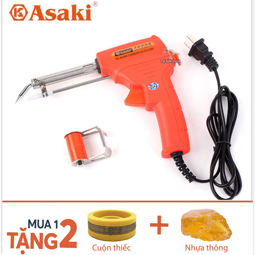 Mỏ hàn nhiệt điện tử tự động đẩy thiếc chính hãng Asaki AK-9095 60W loại xịn - Tặng thiếc & nhựa thông