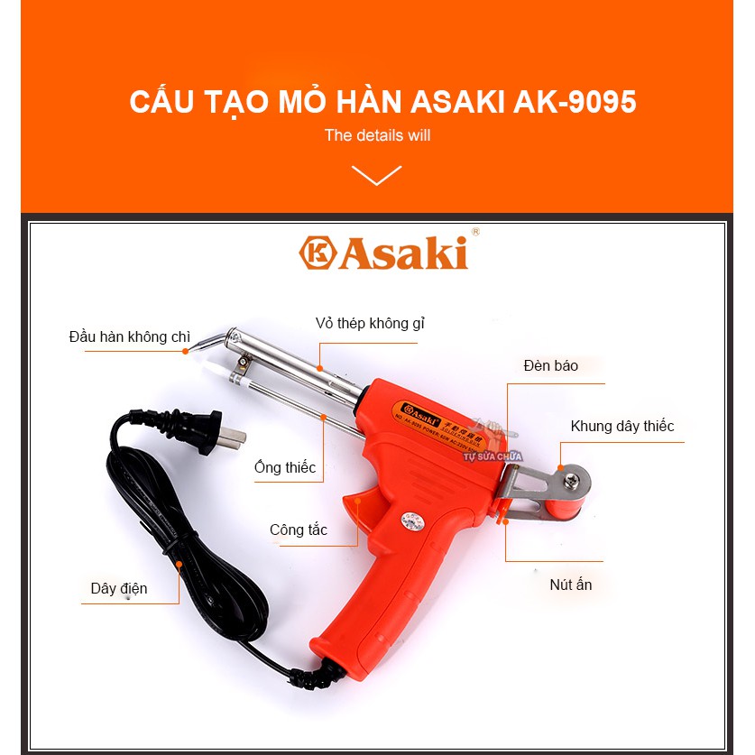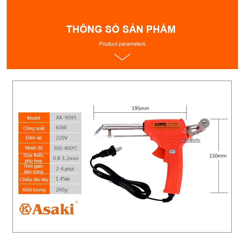 Giới thiệu Mỏ hàn nhiệt điện tử tự động đẩy thiếc chính hãng Asaki AK-9095 60W loại xịn - Tặng thiếc & nhựa thông