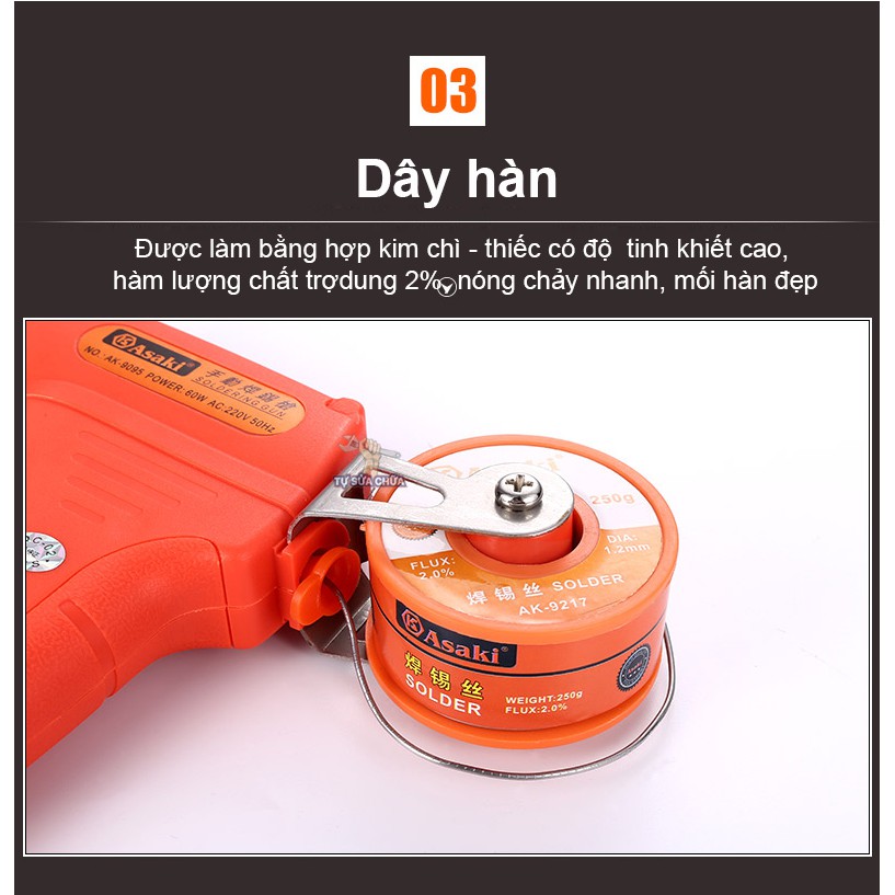 Nhà cửa & Đời sống > Dụng cụ & Thiết bị tiện ích > Dụng cụ > Dụng cụ hàn điện || Mỏ hàn nhiệt điện tử tự động đẩy thiếc chính hãng Asaki AK-9950 60W loại xịn - Tặng thiếc & nhựa thôngCòn hàng