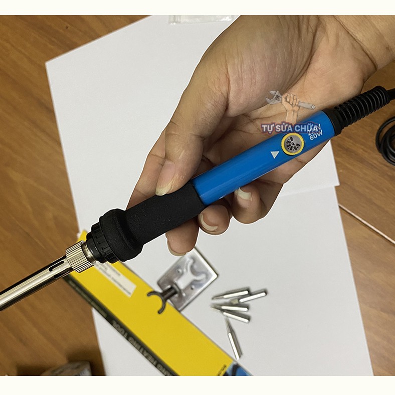 Nhà cửa & Đời sống > Dụng cụ & Thiết bị tiện ích > Dụng cụ > Dụng cụ hàn điện || Mỏ hàn nhiệt mini dạng bút 60W có thể điều chỉnh nhiệt độ từ 200-450 độ (combo thiếc, nhựa thông, 5 mũi hàn , kệ hàn)Còn hàng
