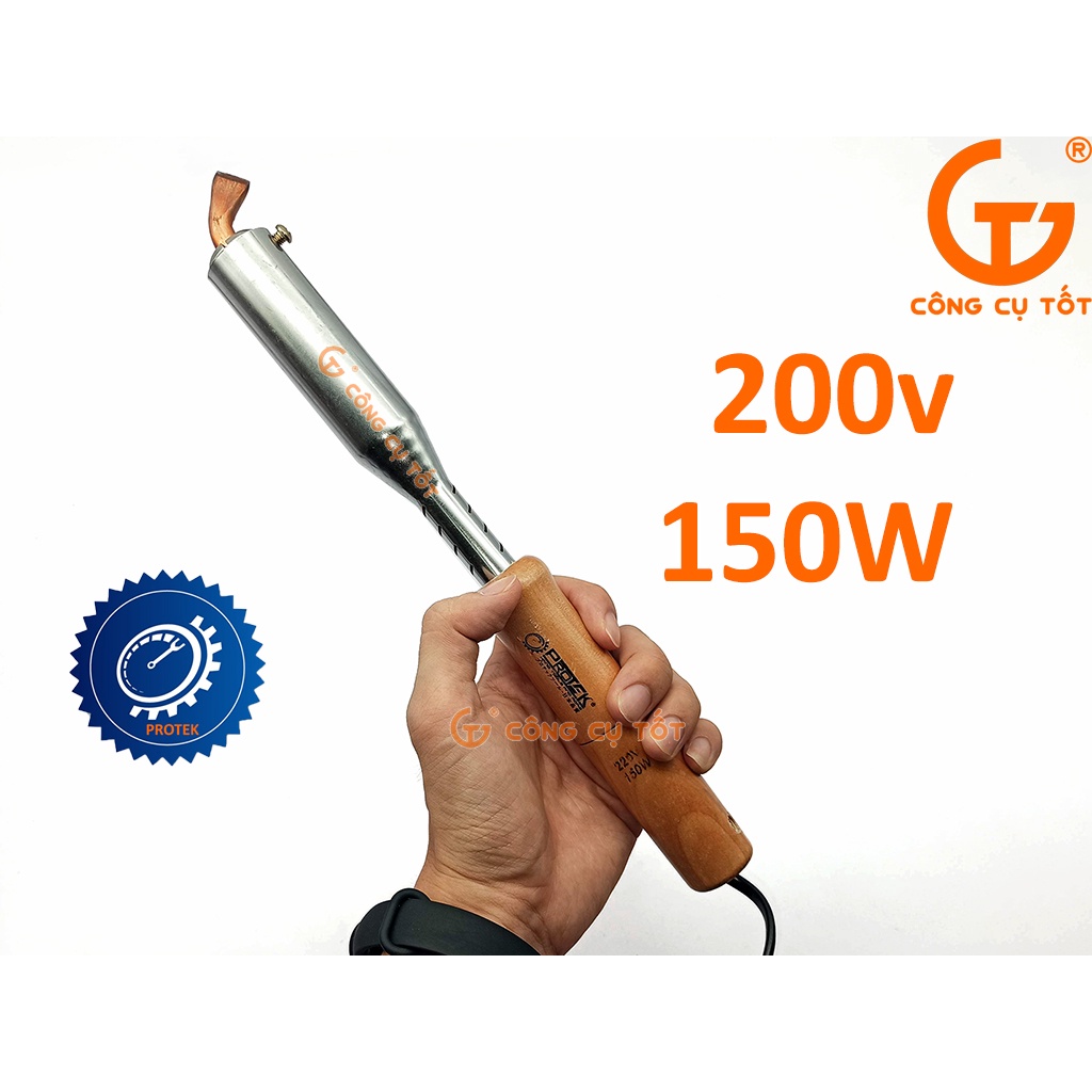 Mỏ hàn nung mỏ dẹp cán gỗ Protek 220V-150W giúp mối hàn ngấu và bóng đẹp. Đây là dụng cụ rất phổ biến trong các ngành điện, điện tử, chế tác linh kiện, ... hay đơn giản là khi bạn cần sửa một số vật dụng điện tử trong gia đình thì mỏ hàn sẽ là sự lựa chọn hữu ích.Mỏ hàn 150W.