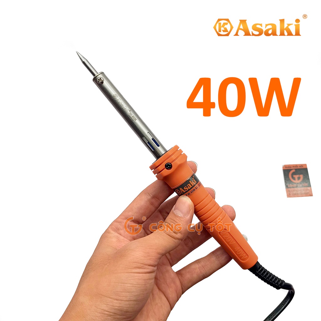 Nhà cửa & Đời sống > Dụng cụ & Thiết bị tiện ích > Dụng cụ > Dụng cụ hàn điện || Mỏ hàn nung mỏ nhọn cán nhựa PBT 40W Asaki AKCòn hàng