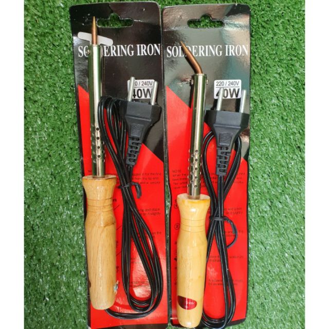Sản phẩm: Mỏ hàn thiếc điện cán gỗ .có hai mũi thẳng và cong.-Chất liệu: thân thép, đầu đồng, cán gỗ cách