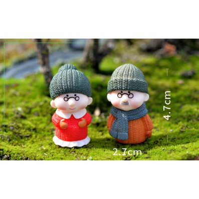 Mô hình 02 ông bà già mặc áo len thích hợp trang trí nhà búp bê, móc khóa, DIY