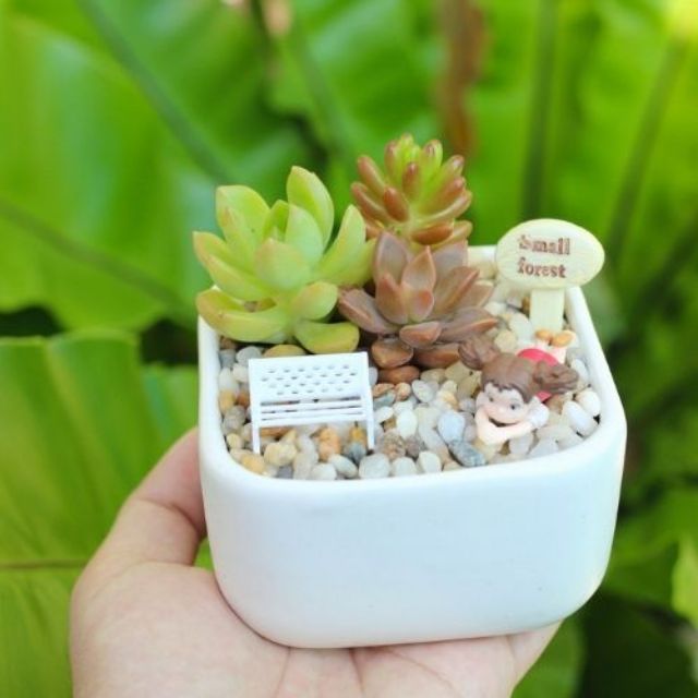 Giới thiệu Mô hình băng ghế trắng trang trí tiểu cảnh terrarium
