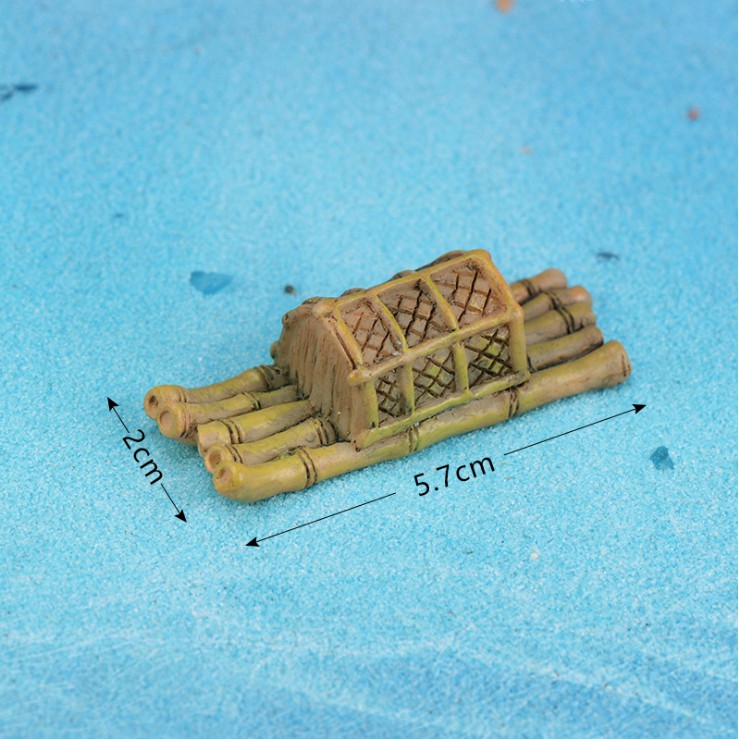 Mô hình bè trúc cho các bạn thử dựng tiểu cảnh, kích thước mẫu nhỏ 5 x 2.5cm, mẫu lớn 10 x 5 x 1cm.Bè tre có mái che kích thước 2 x 5.7cm.