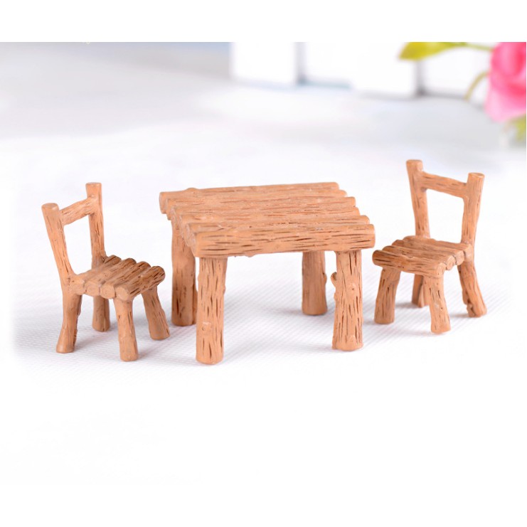 Mô hình bộ bàn ghế làm theo dáng gỗ để mộc bằng chất liệu nhựa ABS thích hợp trang trí nhà búp bê, tiểu cảnh.Kích thước ghế: 2.1 x 3.3cm.