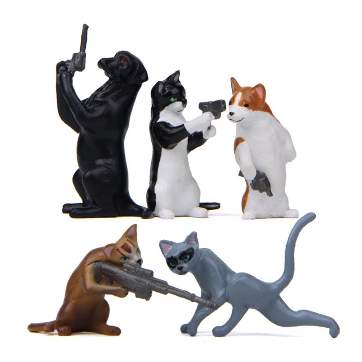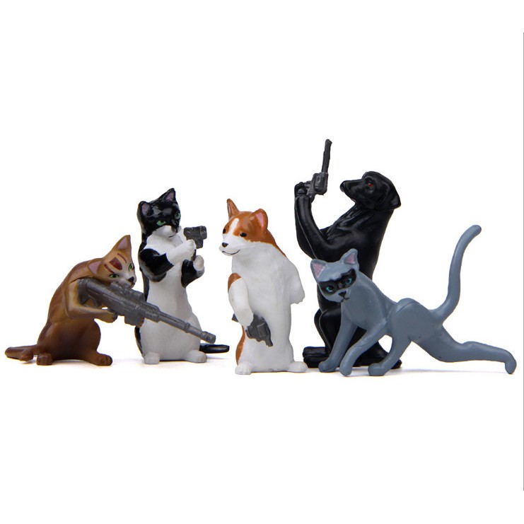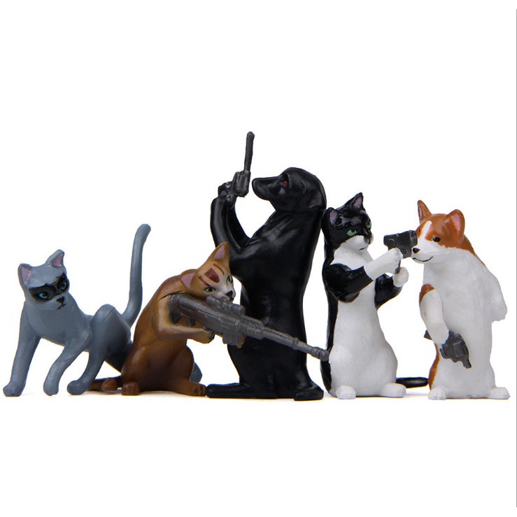 Mô hình bộ chó mèo điệp viên để bàn, trang trí bàn làm việc