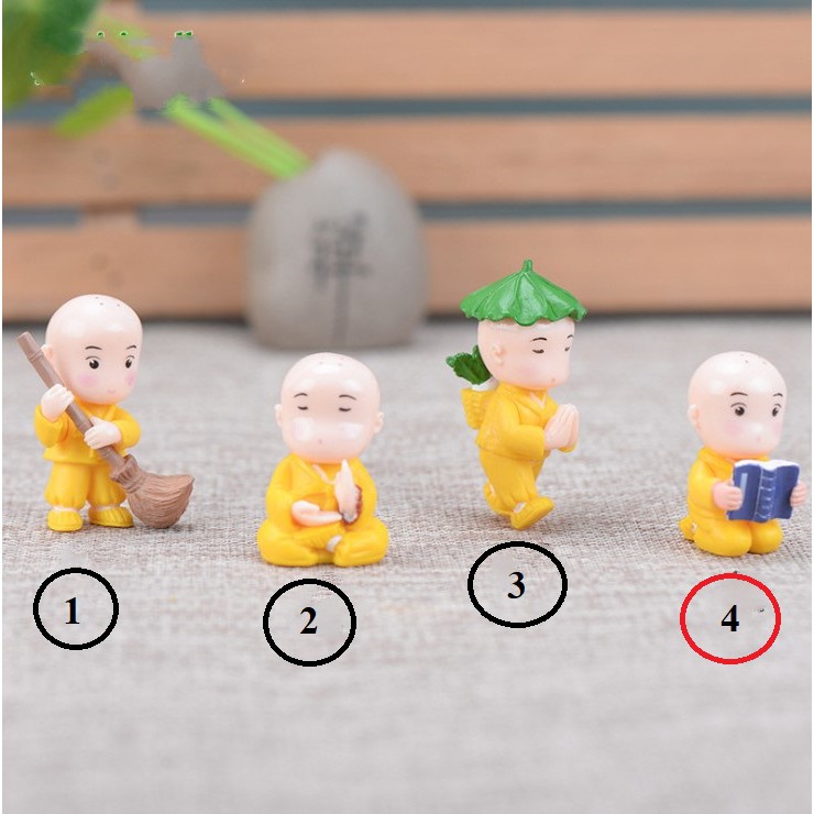 Mô hình các chú tiểu tụng kinh, quét chùa thích hợp trang trí tiểu cảnh, móc khóa, DIY