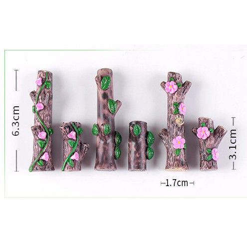 Sản phẩm là các mô hình thân gỗ mọc họa và dây leo thích hợp trang trí tiểu cảnh, bonsai.Kích thước : đoạn lớn cao 6.3 x 1.7cm, đoạn nhỏ cao 3.1 x 1.7cm