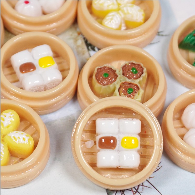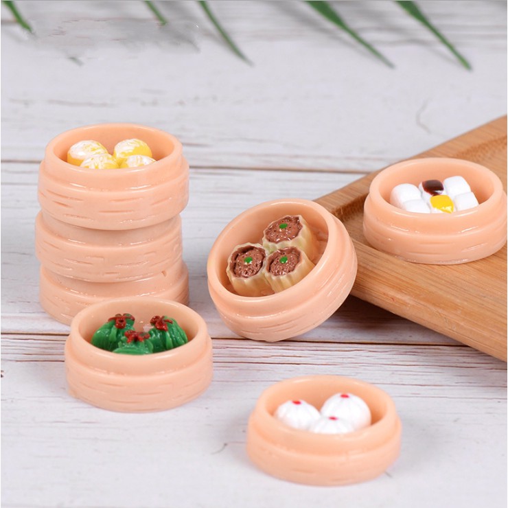 Mô hình các khay bánh ú, bánh bao, dimsum trang trí nhà búp bê, móc khóa, DIY