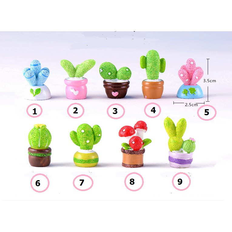 Mô hình các loại chậu xương rồng mini trang trí nhà búp bê, tiểu cảnh, bonsai, móc khóa, DIY