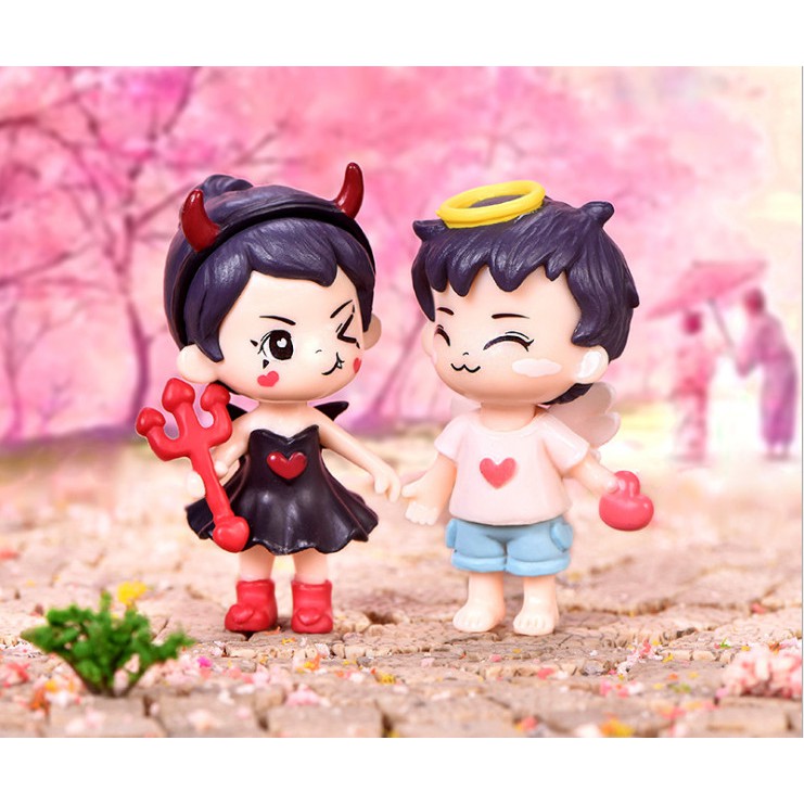 Mô hình cặp đôi bé trai gái tiểu yêu tinh dễ thương, làm quà tặng, trang trí tiểu cảnh HalloweenSize ~3.5*5CM