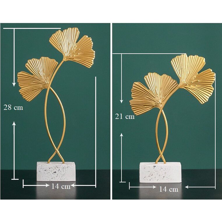 - Mô hình trang trí cặp lá yêu thương có đế được cấu tạo từ Composit giả đá, phần thân và lá làm từ sắt phủ sơn tĩnh điện màu vàng cao cấp, thiết kế đơn giản nhưng đầy sang trọng và tinh tế.