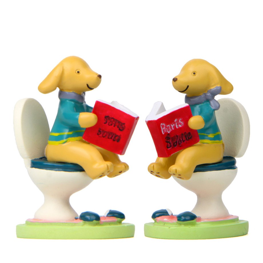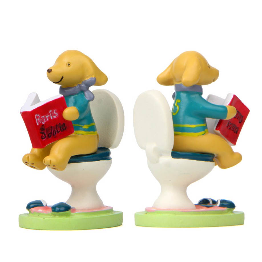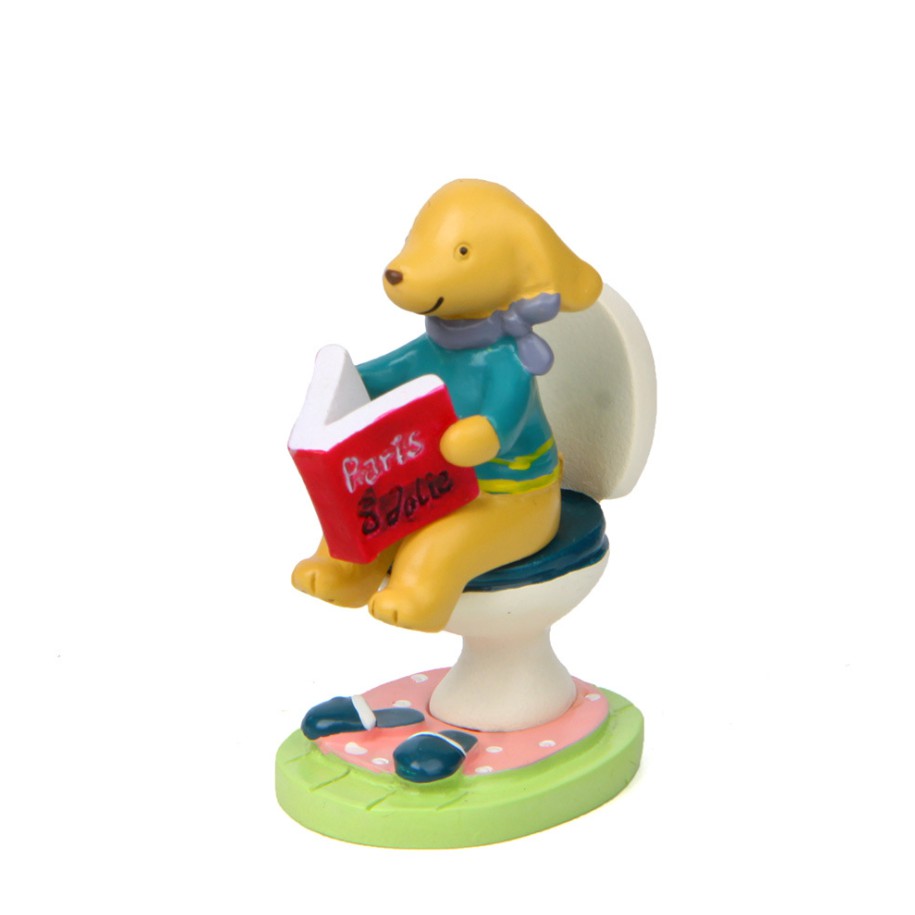 Mô hình cậu Cún vừa đi toilet vừa đọc sách đầy vui nhộn dành trang trí tiểu cảnh, DIY
