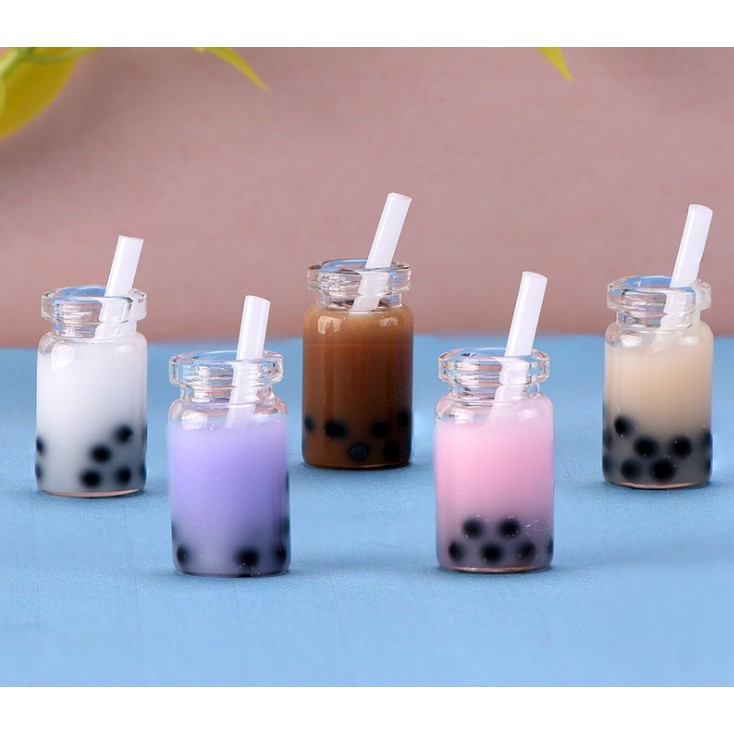Mô hình chai trà sữa trân châu trang trí tiểu cảnh, nhà búp bê, móc chìa khóa, DIY