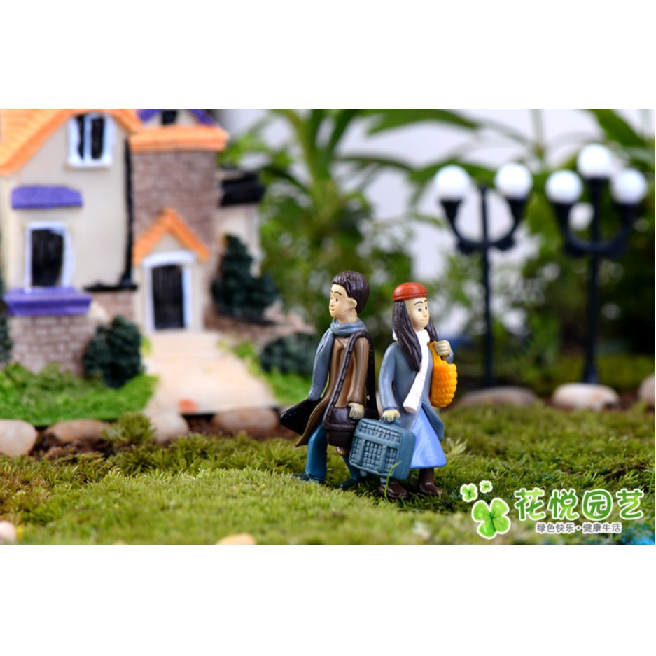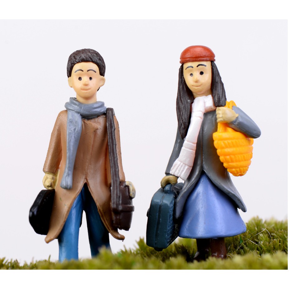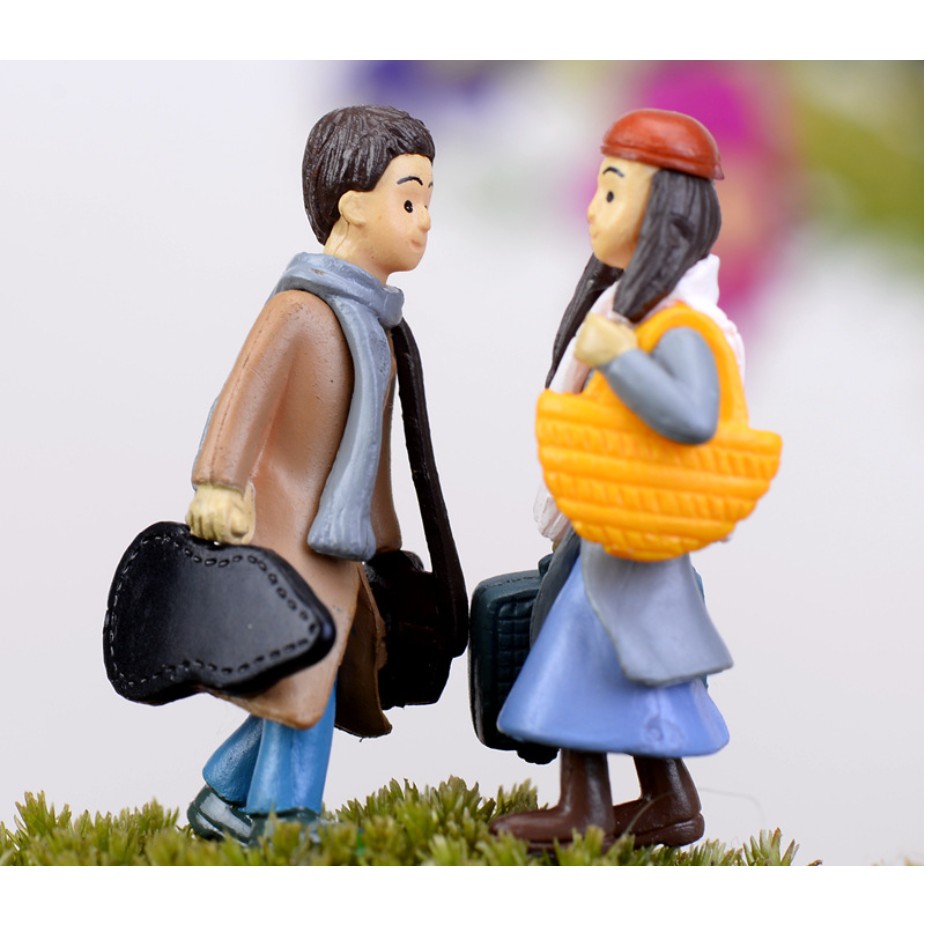 Mô hình chàng nhạc sĩ và cô gái xách vali "Bản tình ca mùa đông" trang trí tiểu cảnh, bonsai