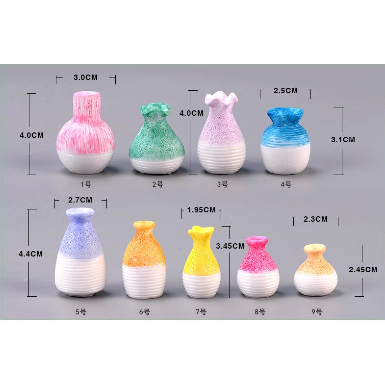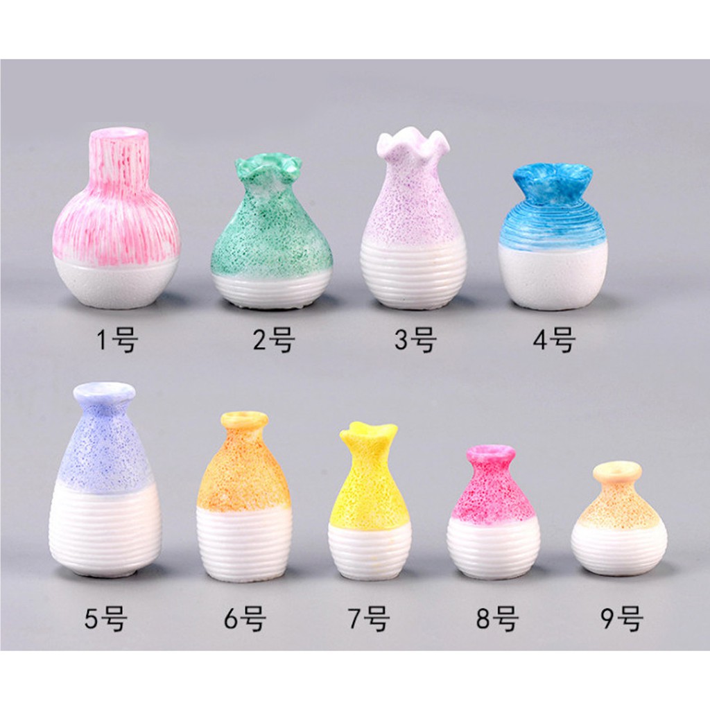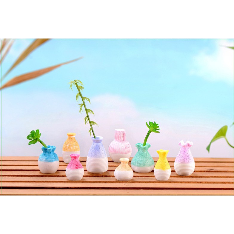 Mô hình chậu cây, bình hoa nhiều màu trang trí tiểu cảnh