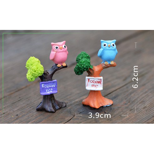 Mô hình chim cú mèo béo tròn đậu trên cành cây trang trí tiểu cảnh, DIY (SMD-870)