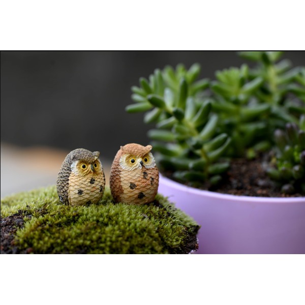 Mô hình chim cú mèo thân tròn đẹp trang trí tiểu cảnh, bonsai, DIY (bán lẻ từng mẫu, mua full chọn theo bội số 4)