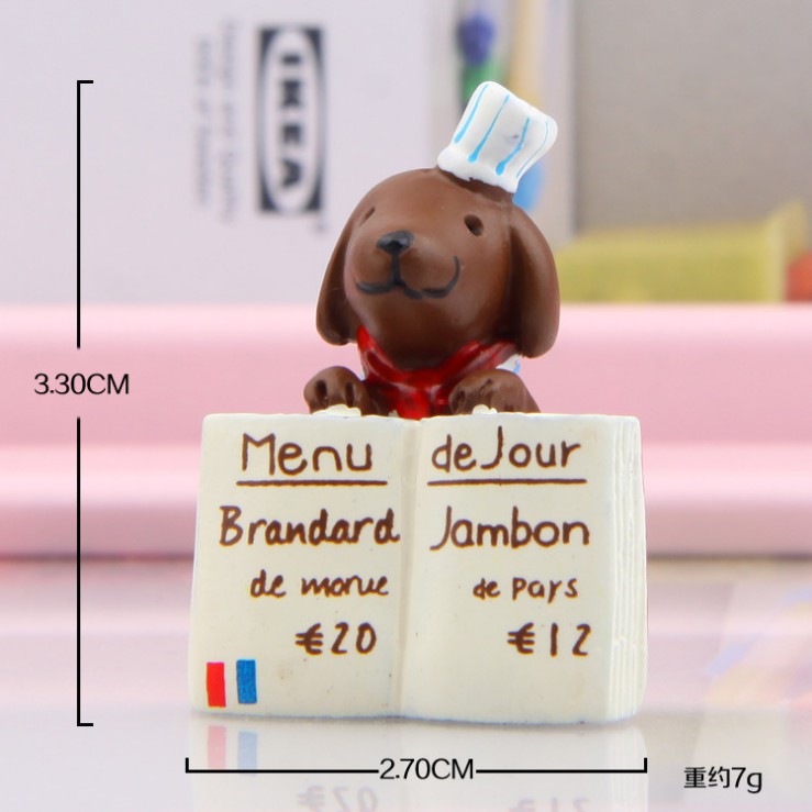Nhà cửa & Đời sống > Nội thất > Bàn || Mô hình chó đầu bếp ôm menu dùng trang trí bàn lễ tân, DIYCòn hàng