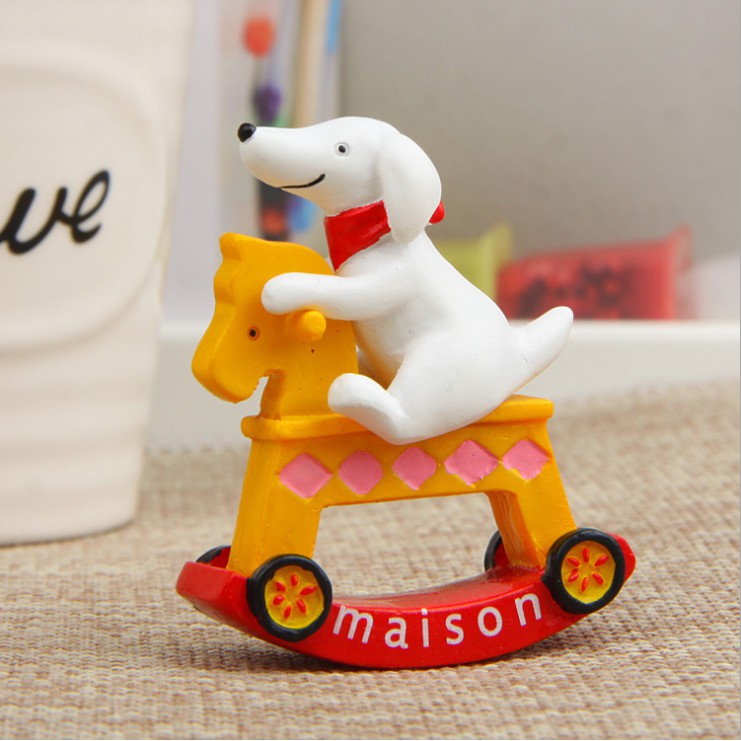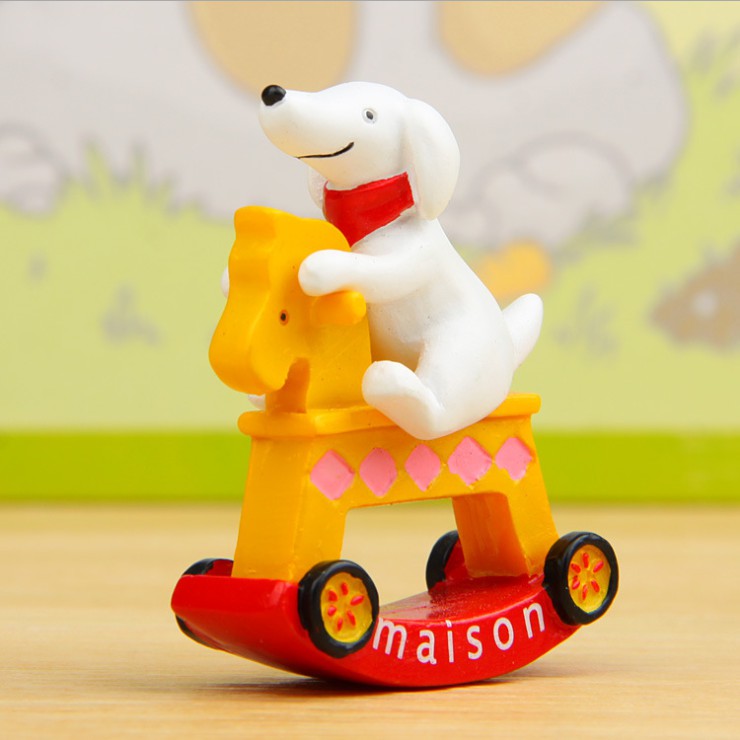 Mô hình chó trắng cưỡi ngựa gỗ Maison để trang trí tiểu cảnh, dựng studio, DIY
