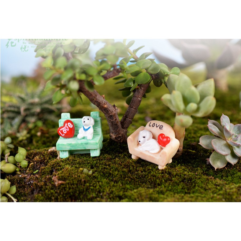 Nhà cửa & Đời sống > Làm vườn > Trang trí vườn || Mô hình chó trắng nằm ghế sofa trang trí tiểu cảnh, DIYCòn hàng