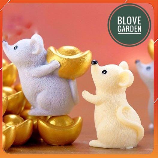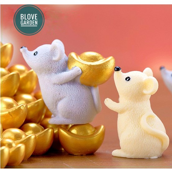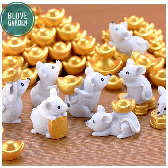 Mô hình chú chuột vàng may mắn trang trí nhà cửa, bàn làm việc, chậu trồng cây, làm tiểu cảnh, quà tặng năm mới ý nghĩa