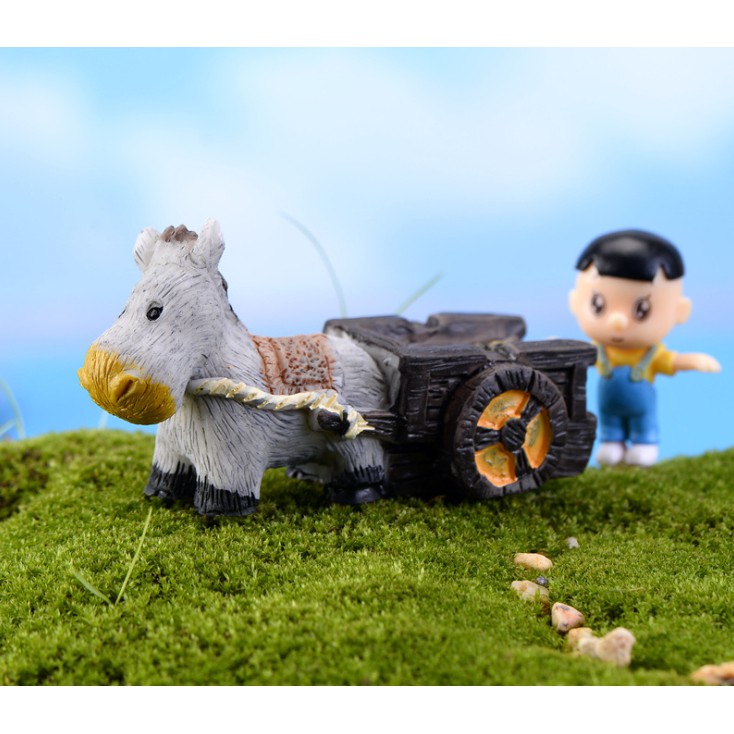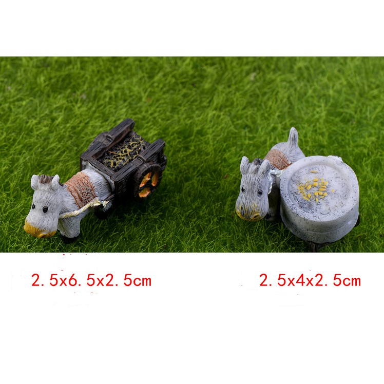 Mô hình chú lừa kéo xe và đẩy cối xay bột trang trí tiểu cảnh, chụp ngoại cảnh, DIY