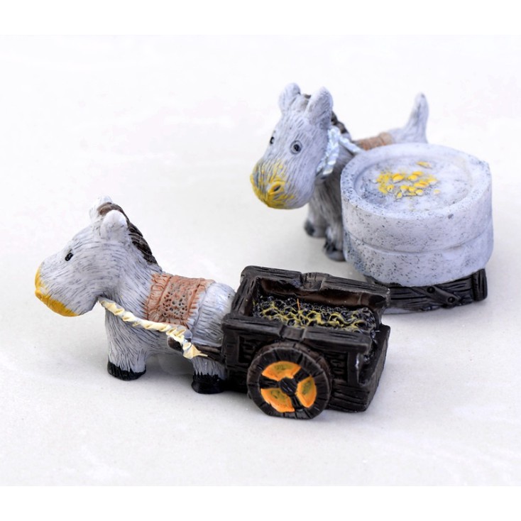 Mô hình chú lừa kéo xe, và mẫu kéo cối xay cho các bạn dựng tiểu cảnh, làm móc chìa khóa.