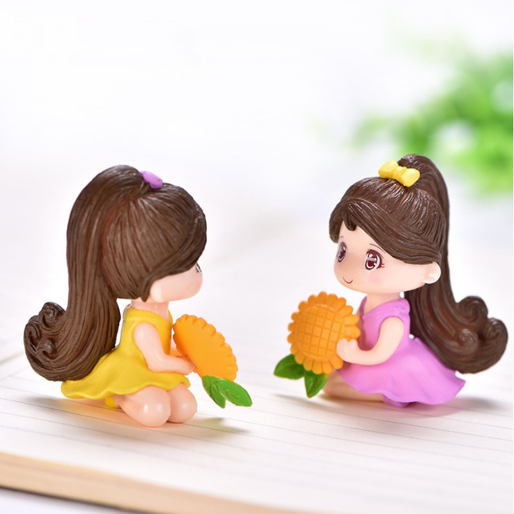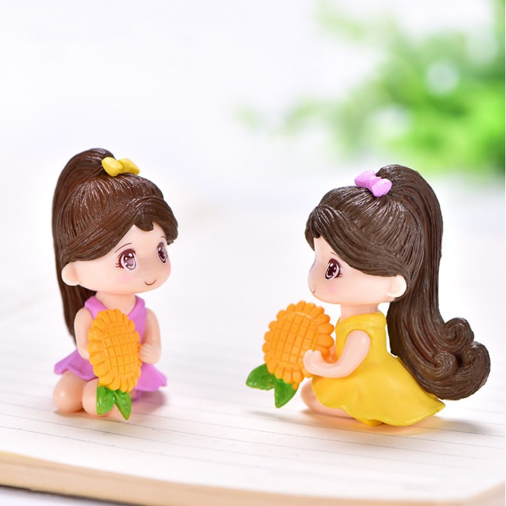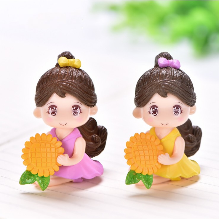 Mô hình cô gái ôm hoa hướng dương dùng trang trí tiểu cảnh, terrarium, móc khóa, DIY